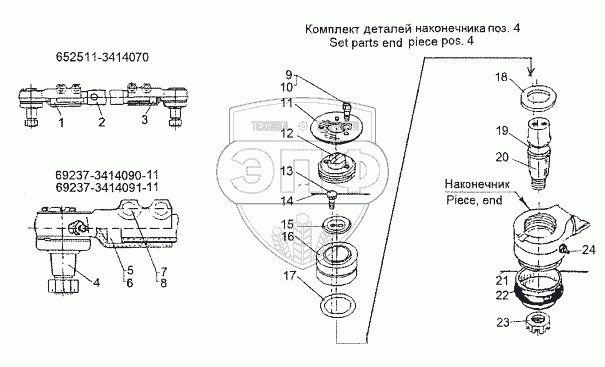 Каталог запасных частей к технике: МЗКТ-652511. Тяга 652511-3414070