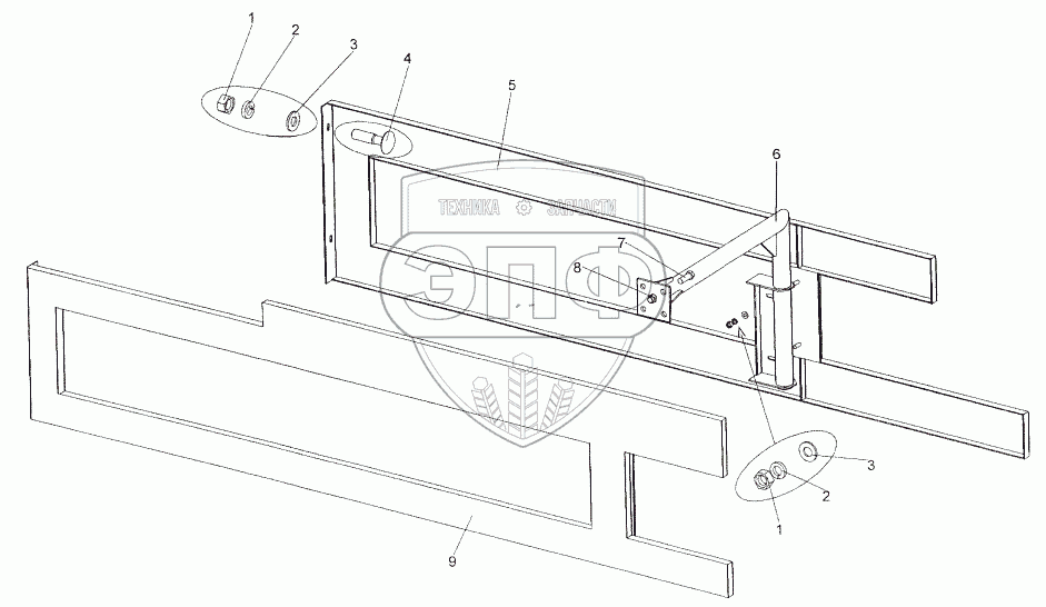 Каталог запасных частей к технике: МЗКТ-652511. Установка бокового ограждения