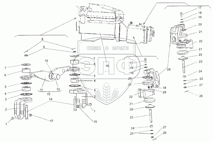 Каталог запасных частей к технике: МЗКТ-652511. Установка двигателя