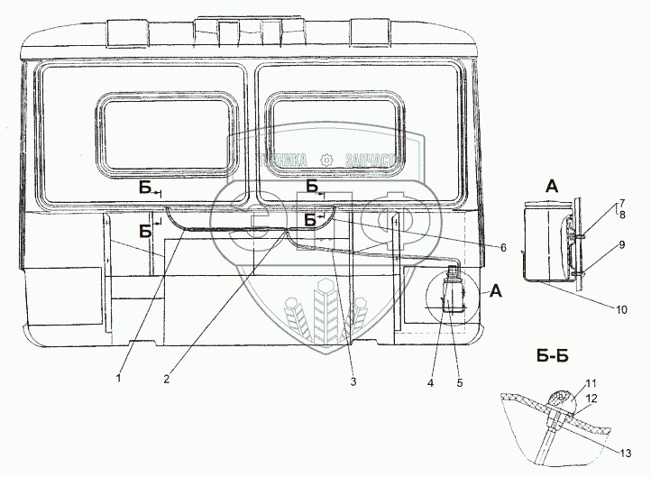 Каталог запасных частей к технике: МЗКТ-652511. Установка омывателя