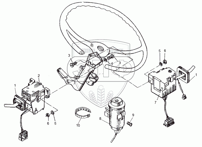Каталог запасных частей к технике: МЗКТ-652511. Установка переключателей на рулевой колонке