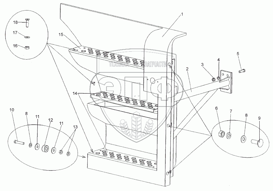 Каталог запасных частей к технике: МЗКТ-652511. Установка подножек