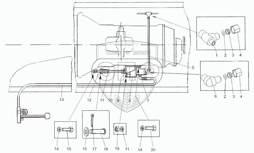 Каталог запасных частей к технике: МЗКТ-652511. Установка привода управления сцеплением