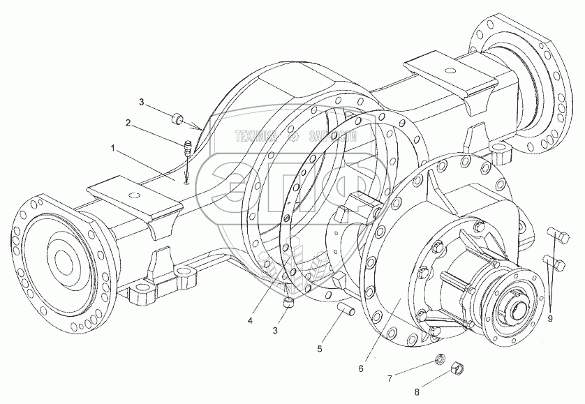 Каталог запасных частей к технике: МЗКТ-652511. Установка редуктора переднего моста