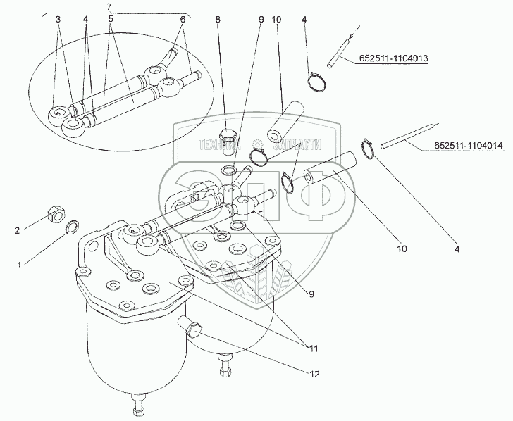 Каталог запасных частей к технике: МЗКТ-652511. Установка топливных фильтров грубой очистки