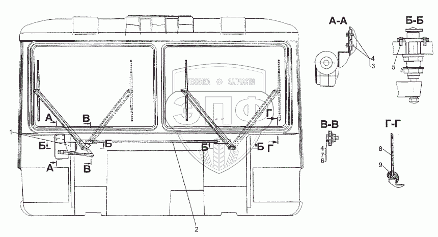 Каталог запасных частей к технике: МЗКТ-652511. Установка ветровых окон и стеклоочистителя