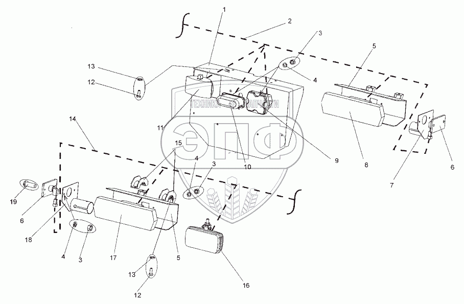 Каталог запасных частей к технике: МЗКТ-652511. Установка задних фонарей