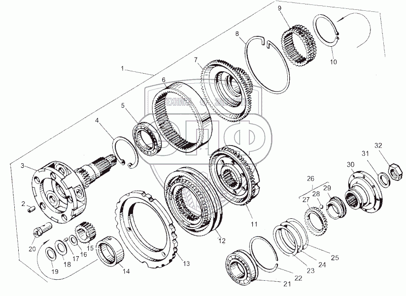 Каталог запасных частей к технике: МЗКТ-652511. Вал выходной