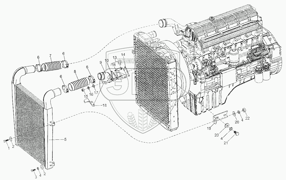 Каталог запасных частей к технике: МЗКТ-700600-011. Установка охладителя наддува