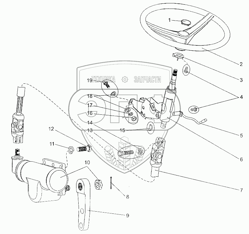 Каталог запасных частей к технике: МЗКТ-700600-011. Установка рулевого управления