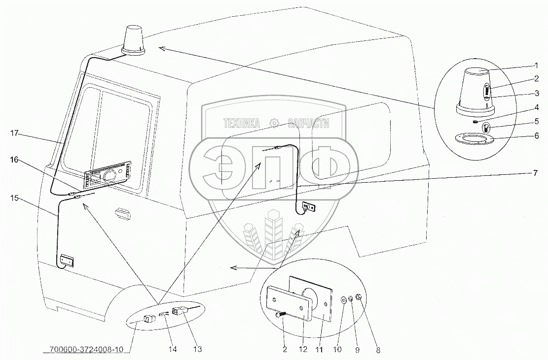 Каталог запасных частей к технике: МЗКТ-700600-011. Установка сигнальных маяков
