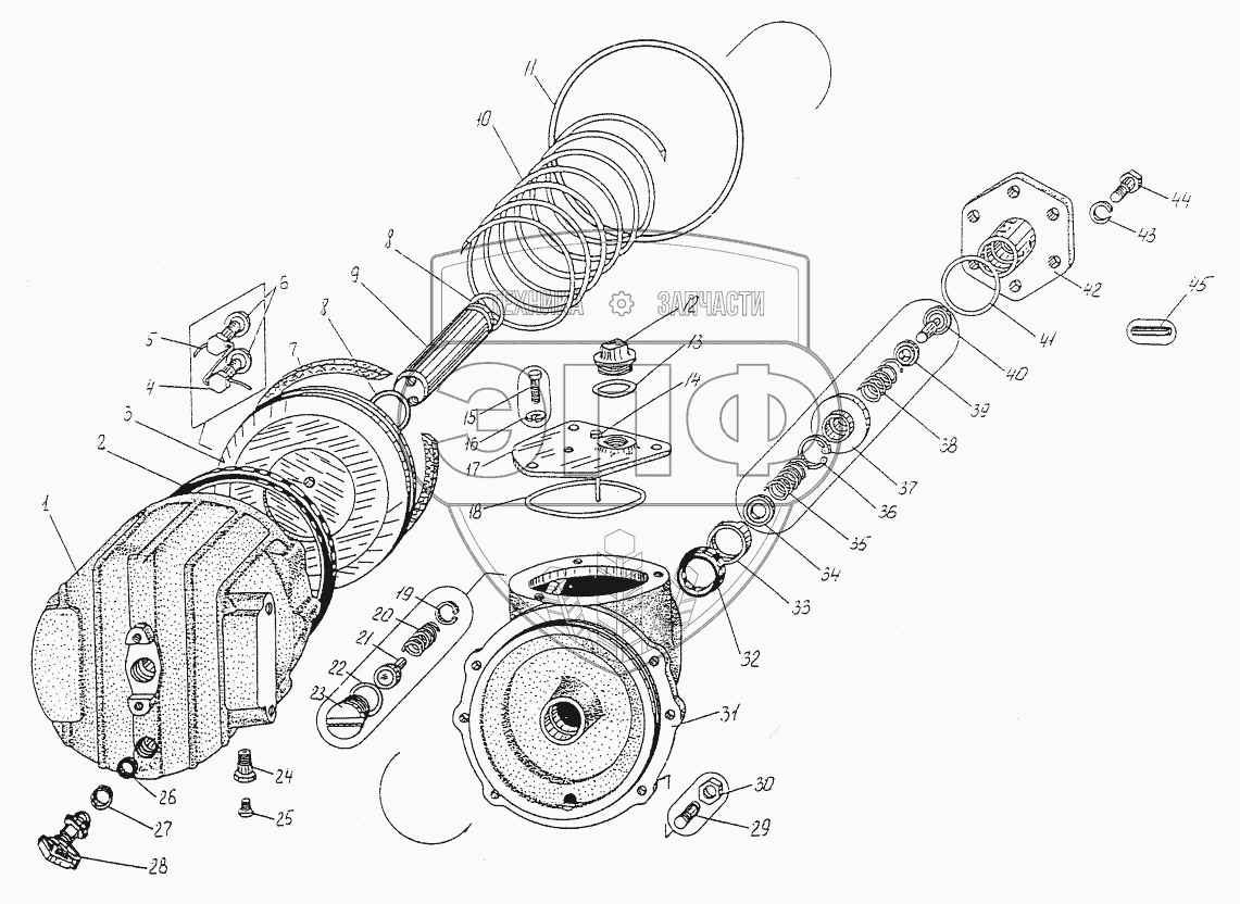 Каталог запасных частей к технике: МЗКТ-74131. Главный тормозной цилиндр