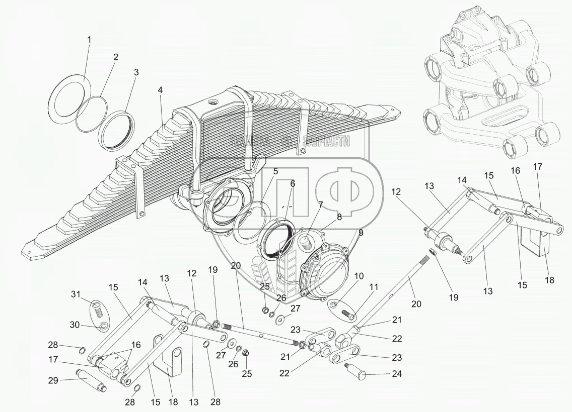 Каталог запасных частей к технике: МЗКТ-74131. Подвеска задняя