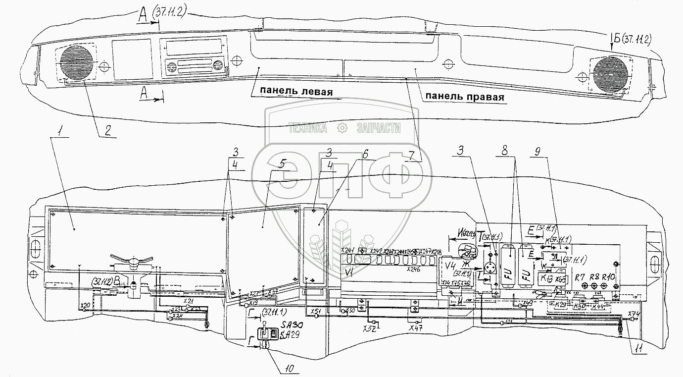Каталог запасных частей к технике: МЗКТ-74131. Установка электрооборудования в кабине
