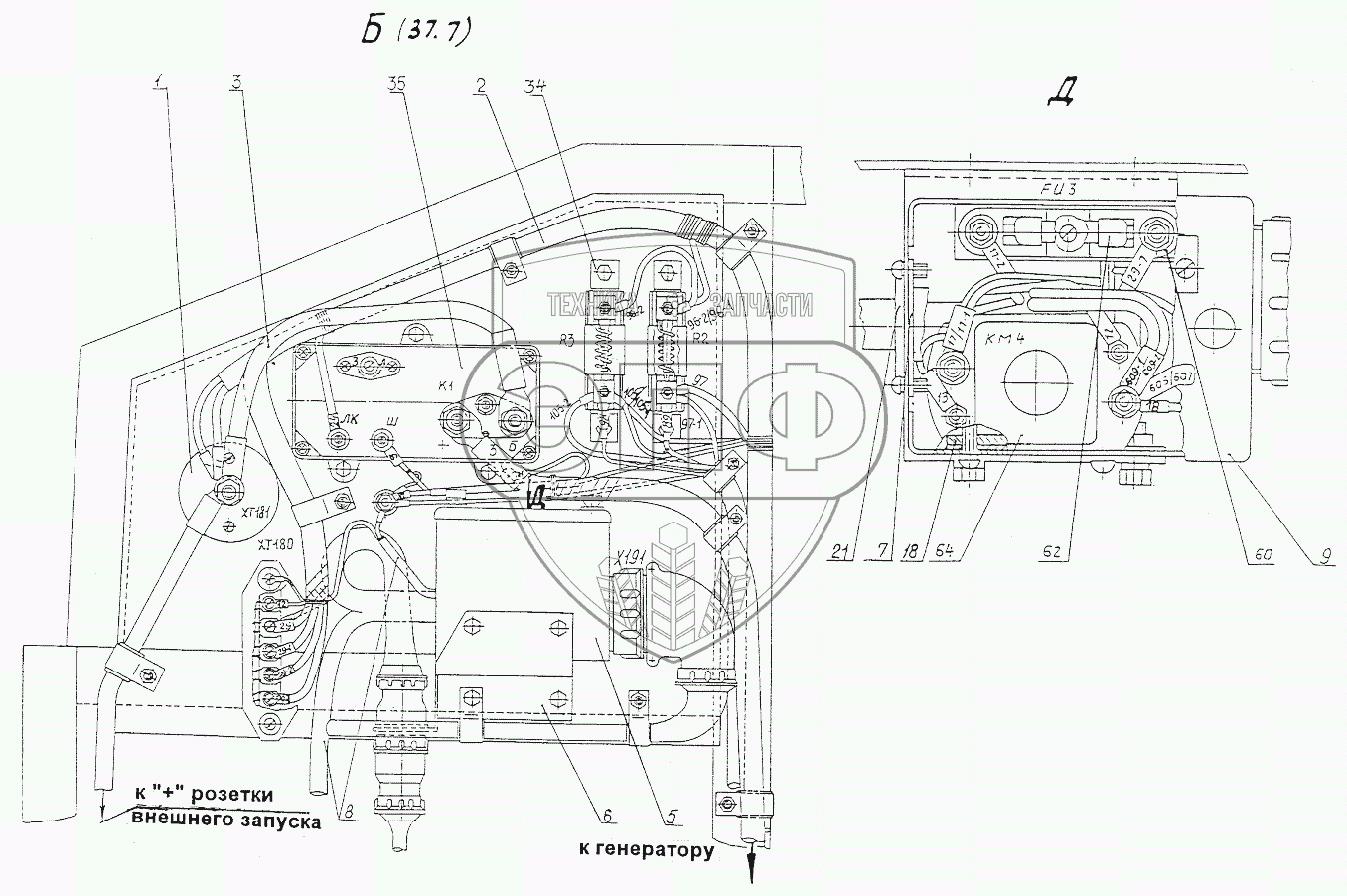 Каталог запасных частей к технике: МЗКТ-74131. Установка реле-регулятора
