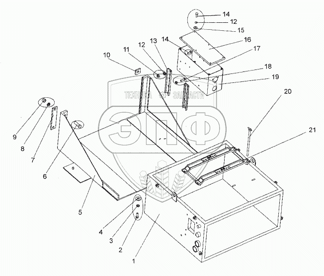 Каталог запасных частей к технике: МЗКТ-74171. Крепление контейнера аккумуляторных батарей