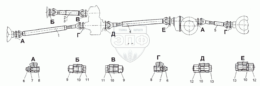 Каталог запасных частей к технике: МЗКТ-74171. Установка карданных валов