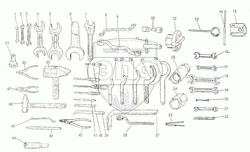 Каталог запасных частей к технике: МЗКТ-74296. Инструмент из комплекта ЗИ