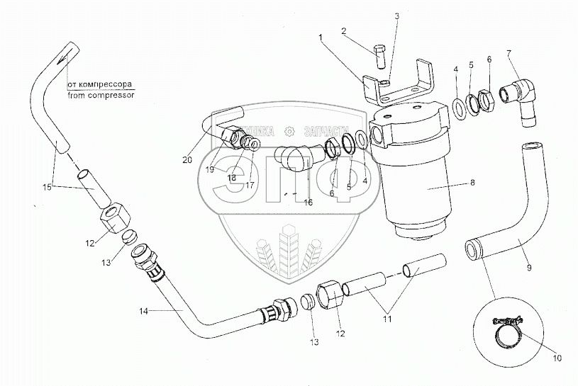 Каталог запасных частей к технике: МЗКТ-74296. Установка фильтра воздушного
