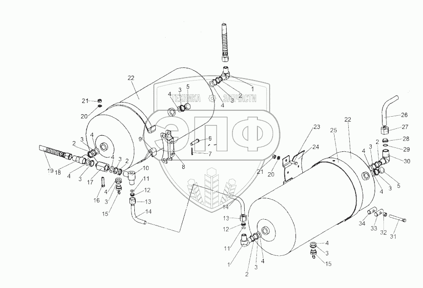 Каталог запасных частей к технике: МЗКТ-74296. Установка воздушных баллонов