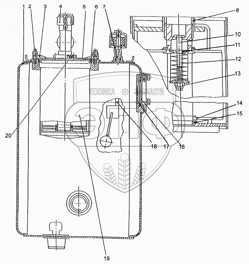 Каталог запасных частей к технике: МЗКТ-79092. Бак масляный