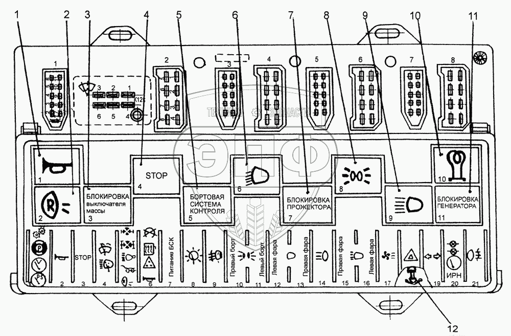 Каталог запасных частей к технике: МЗКТ-79092. Блок предохранителей и реле