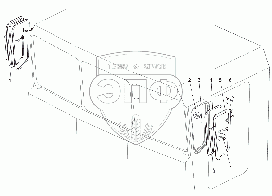 Каталог запасных частей к технике: МЗКТ-7930-200. Установка окон боковин