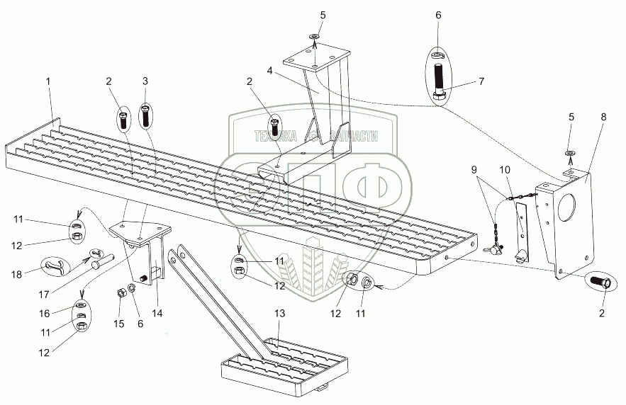 Каталог запасных частей к технике: МЗКТ-7930-200. Установка подножек