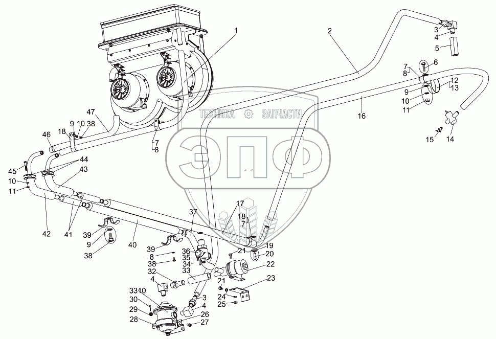 Каталог запасных частей к технике: МЗКТ-7930-200. Установка трубопроводов отопителей кабин