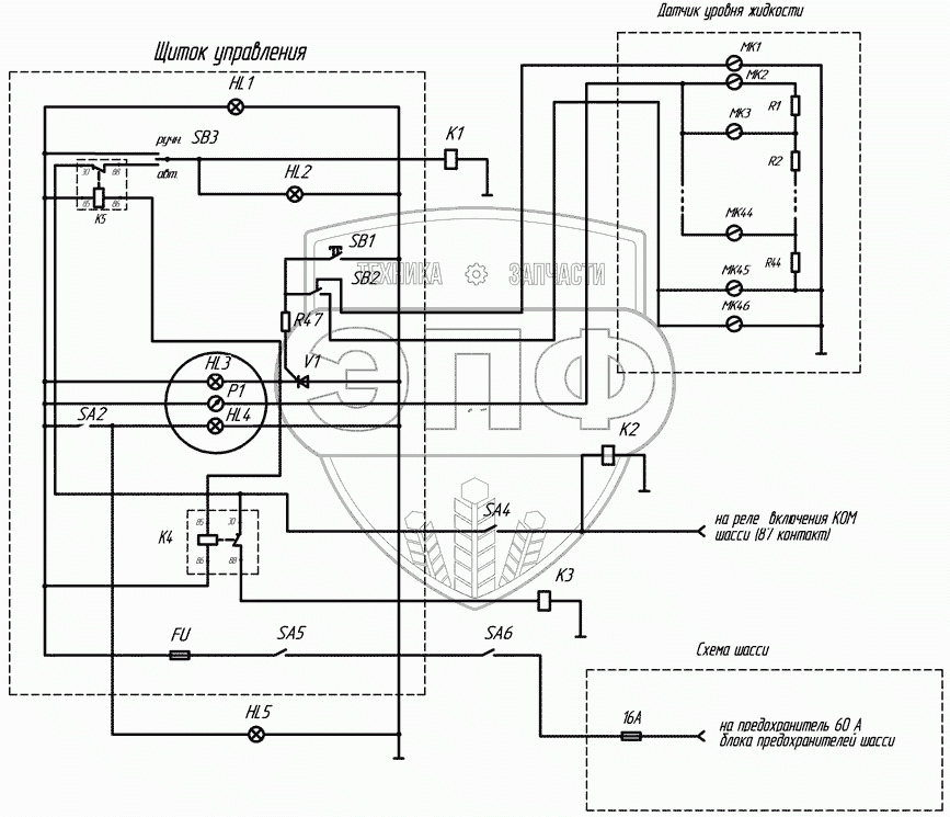 Каталог запасных частей к технике: Нефтекамский автозавод 6606. 2Э66061-3729011Э3 Схема электрическая принципиальная