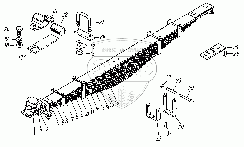 Каталог запасных частей к технике: Нефтекамский автозавод 8527. Рессора