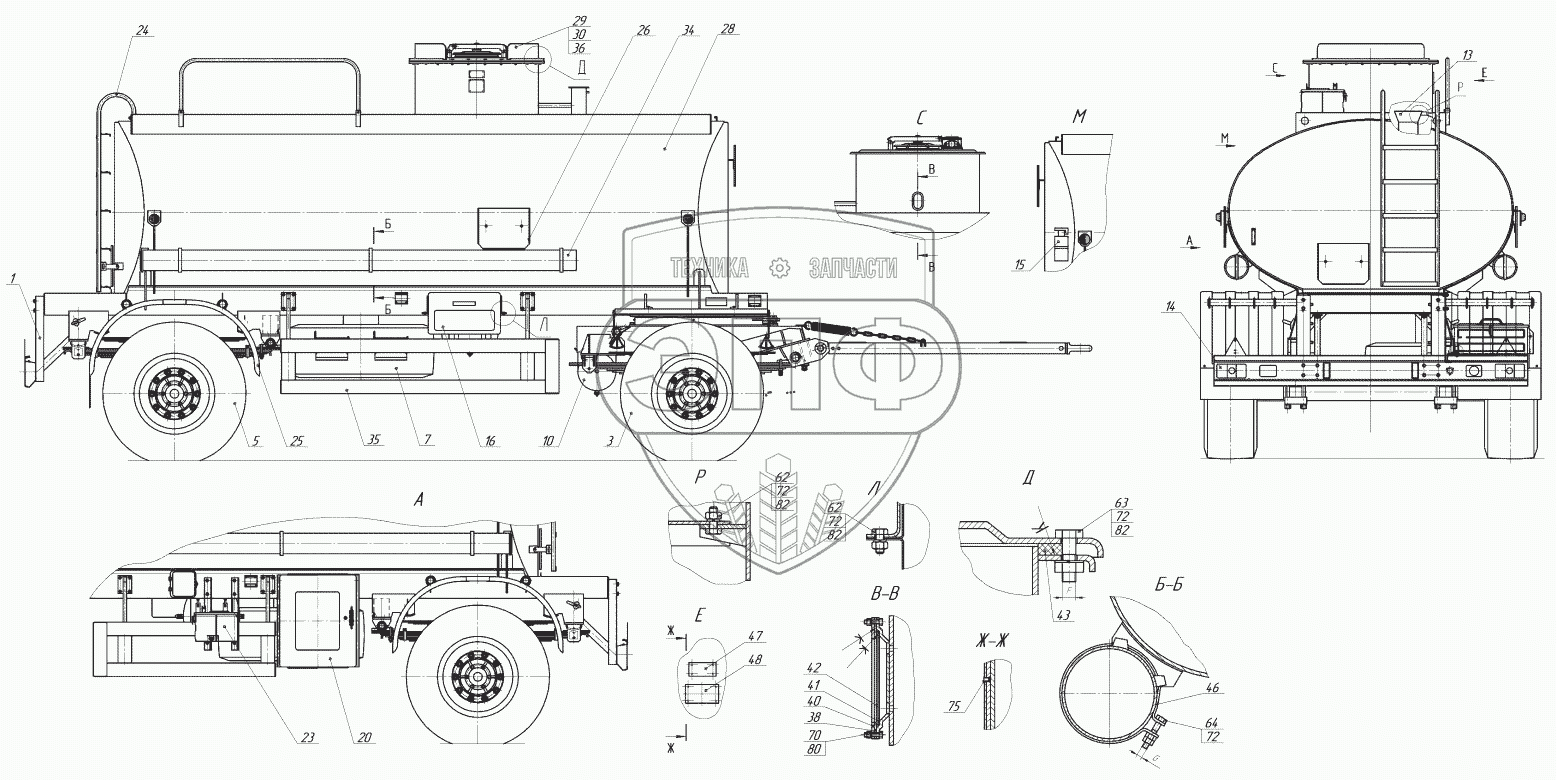 Каталог запасных частей к технике: Нефтекамский автозавод 8602. 8602-0000010-03 Прицеп-цистерна