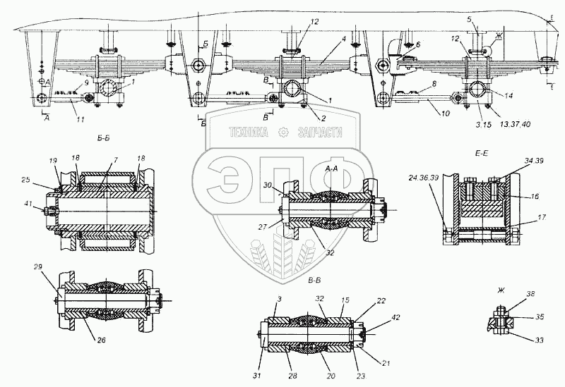Каталог запасных частей к технике: Нефтекамский автозавод 93341. Установка подвески 96931-2900002-01