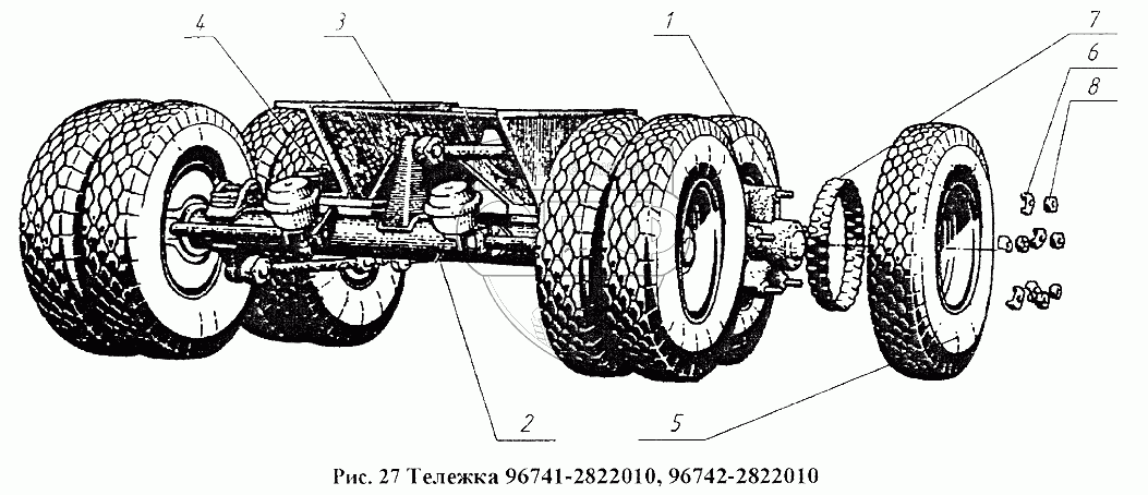 Каталог запасных частей к технике: Нефтекамский автозавод 96741. Тележка 96741-2822010, 96742-2822010