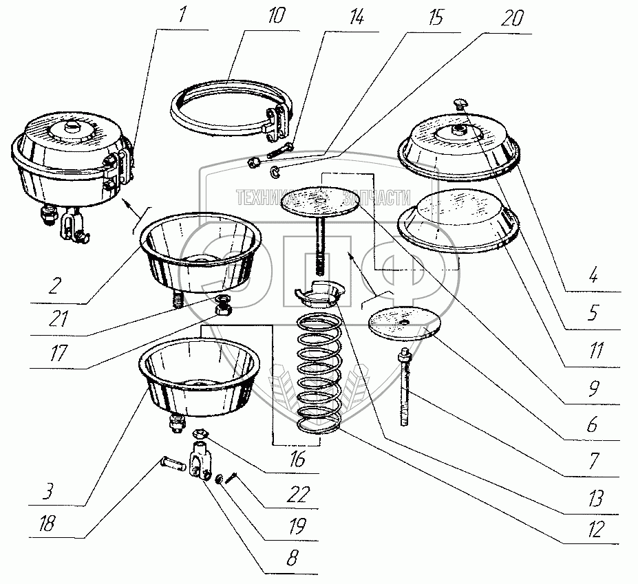 Каталог запасных частей к технике: Нефтекамский автозавод 96741. Тормозная камера 96741-3519210