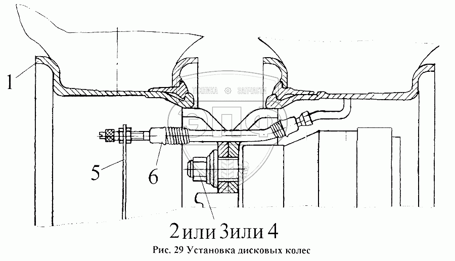 Каталог запасных частей к технике: Нефтекамский автозавод 96741. Установка дисковых колес