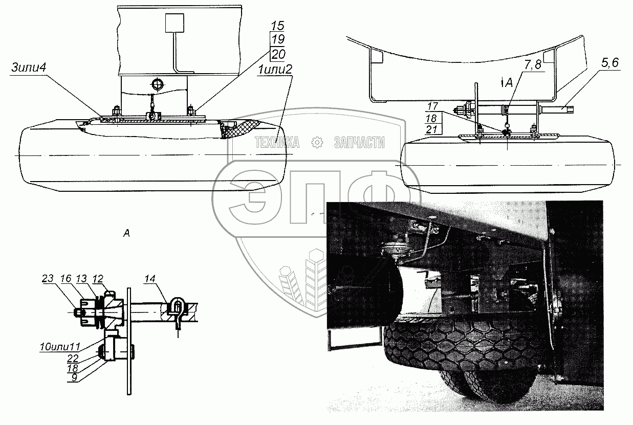 Каталог запасных частей к технике: Нефтекамский автозавод 96741. Установка запасного колеса 9674-3105001