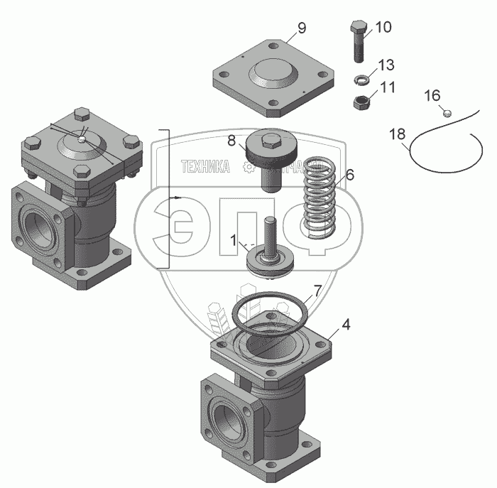 Каталог запасных частей к технике: Нефтекамский автозавод 96742. 6606-8026200 Клапан предохранительный