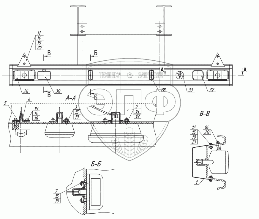 Каталог запасных частей к технике: Нефтекамский автозавод 96742. 96741-3716010 Установка задних фонарей