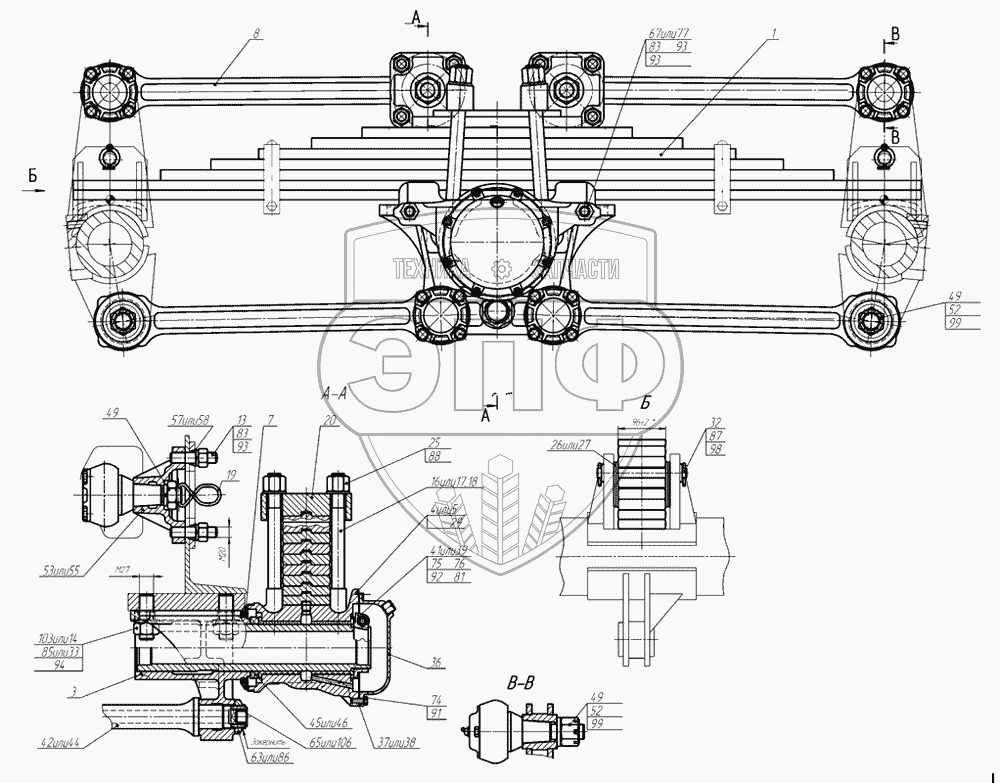 Каталог запасных частей к технике: Нефтекамский автозавод 96742. 96742-2910002-20 Подвеска