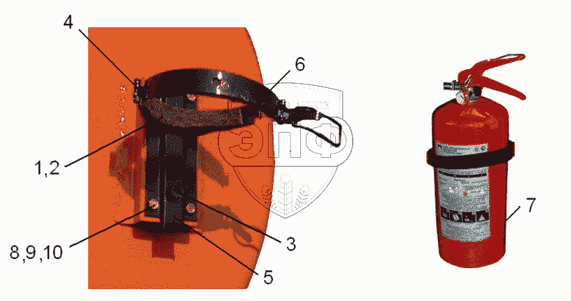 Каталог запасных частей к технике: Нефтекамский автозавод 96742. 9674-3910165 Установка огнетушителя
