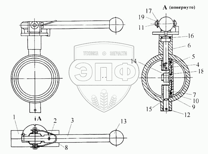 Каталог запасных частей к технике: Нефтекамский автозавод 9693. Затвор поворотный