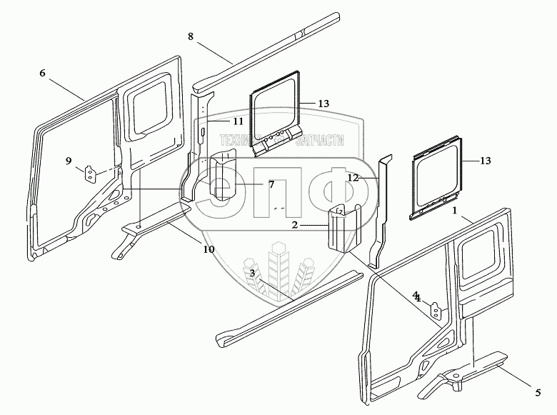 Каталог запасных частей к технике: Shaanxi DeLONG Е-3 (самосвал). Боковина кабины