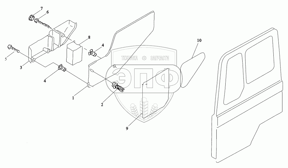 Каталог запасных частей к технике: Shaanxi DeLONG Е-3 (самосвал). Элементы левой двери