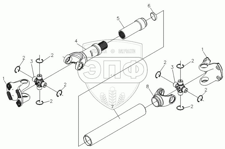 Каталог запасных частей к технике: Shaanxi DeLONG Е-3 (самосвал). Карданный вал