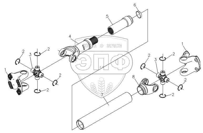 Каталог запасных частей к технике: Shaanxi DeLONG Е-3 (самосвал). Карданный вал