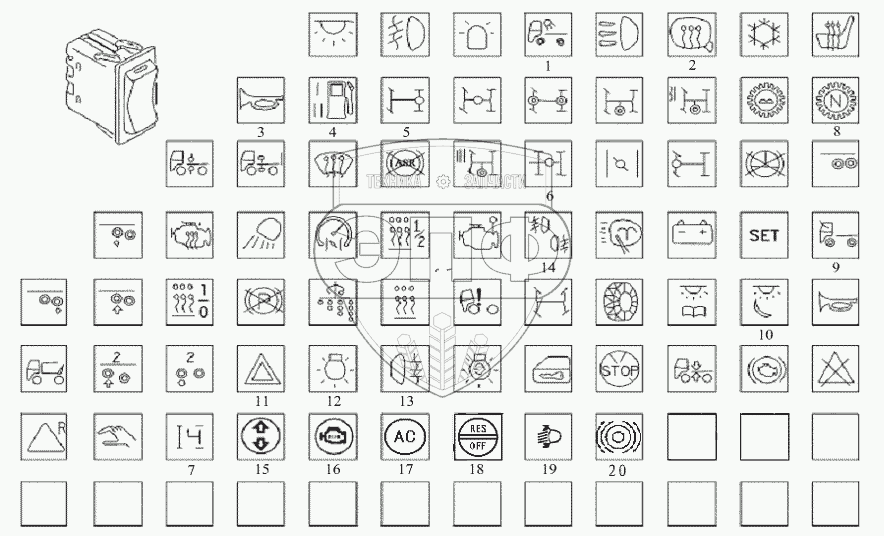 | 14 | 81.25505.6607 | Переключатель противотуманных фонарей | Нет на складе | |