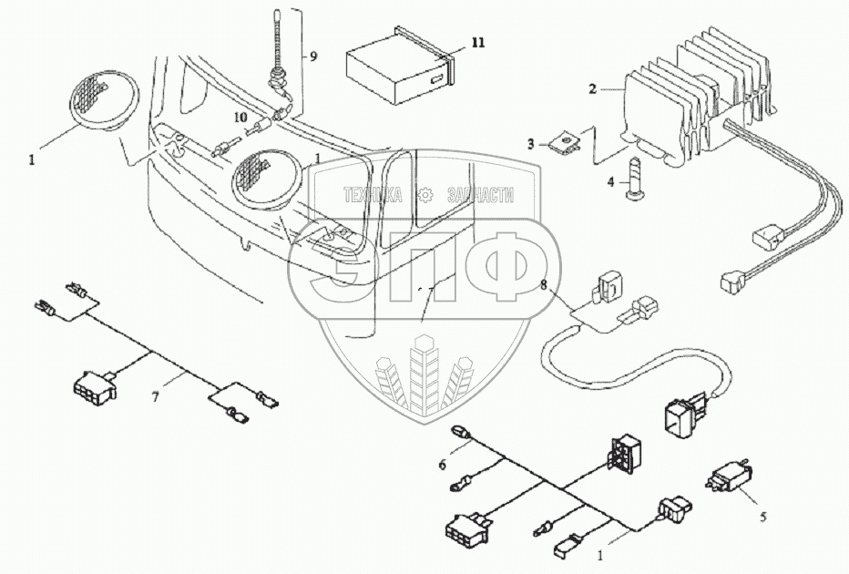 Каталог запасных частей к технике: Shaanxi DeLONG Е-3 (самосвал). Жгуты магнитолы