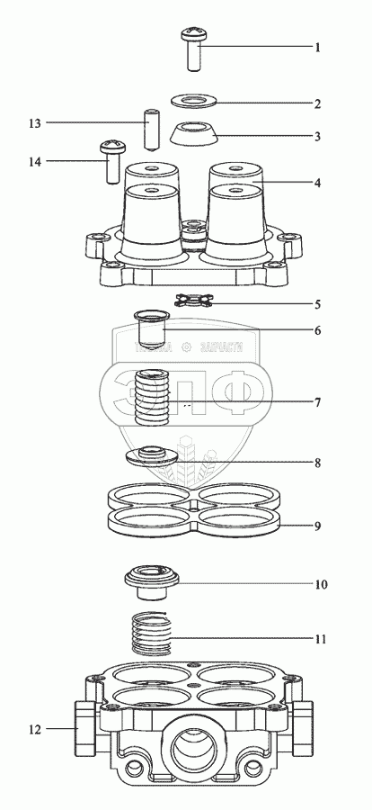 Каталог запасных частей к технике: Shaanxi MAN-F2000 (SX3254JS384). Четырехпроводный защитный клапан