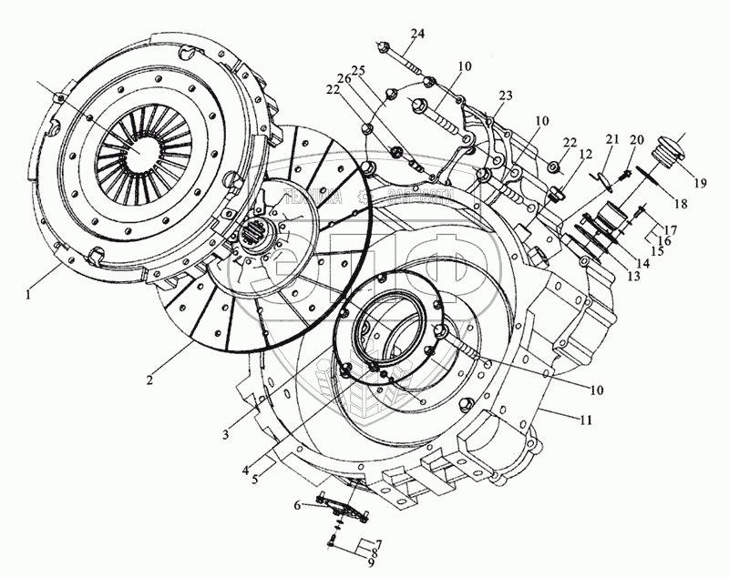 Каталог запасных частей к технике: Shaanxi MAN-F2000 (SX3254JS384). M3400-1600000 CLUTCH ASSY